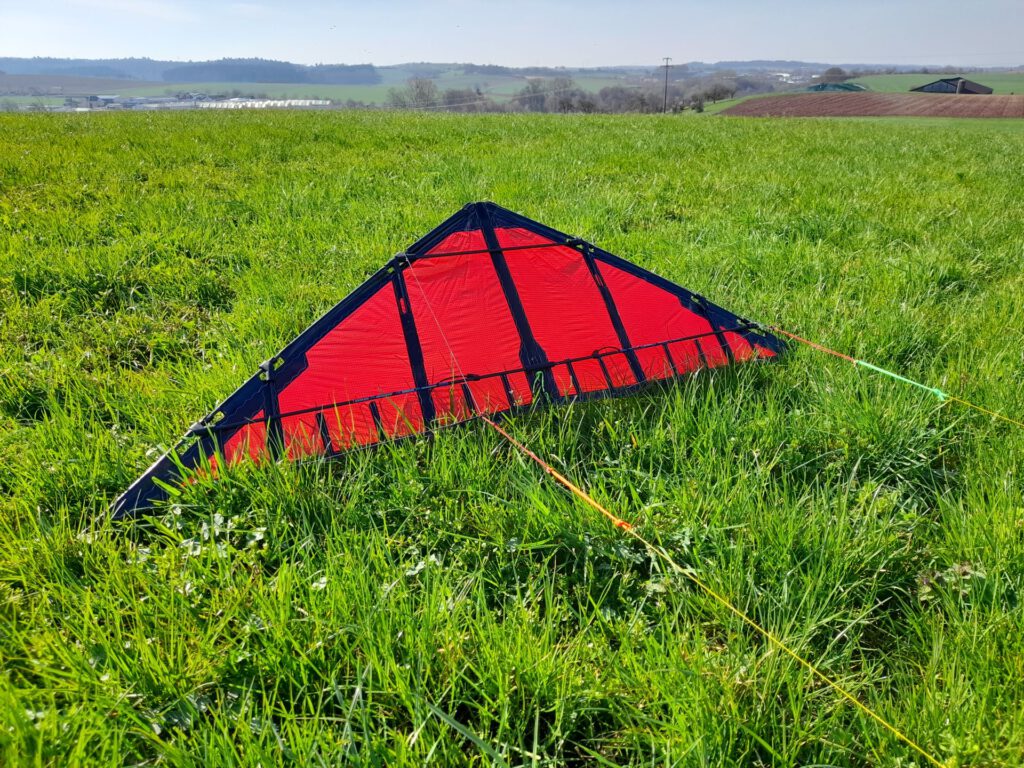 Bei böigen 3 Bft. geht heute erstmals der Speedkite Spy an die Leinen. Zuvor war aber testweise die 2er Symphony Speed in der Luft, die an den 55 daN-Leinen satt und sauber lief. Dass der Start eines Speedkites schwierig ist, ist allgemein bekannt. Dennoch bin ich erstaunt, dass ich den Spy gar nicht die Luft bekomme. Nach etwas trimmen an Knotenleitern der Waage gelingen ein paar enttäuschende Hüpfer – mehr ist erstmal nicht drin.